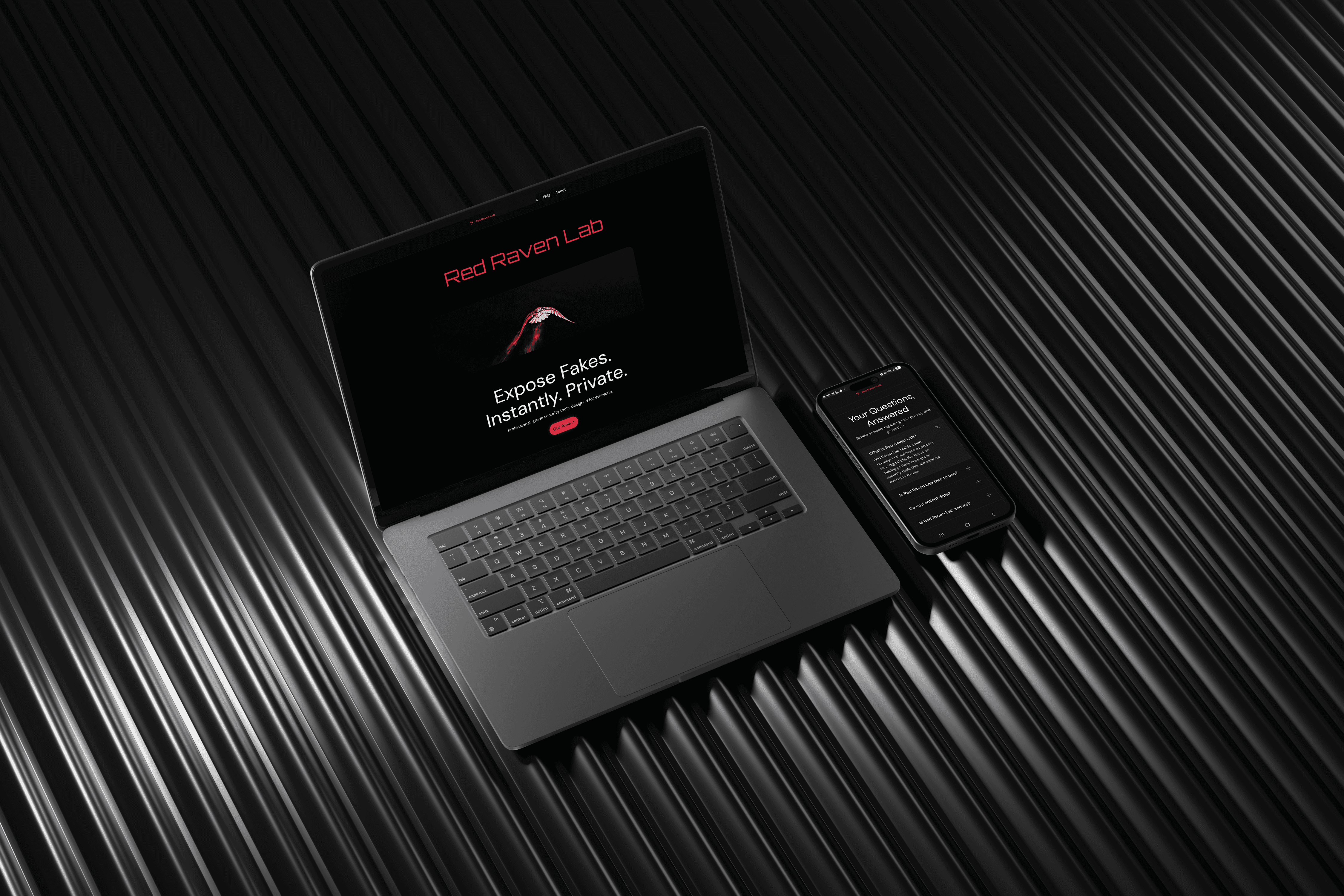 Red Raven Lab was built on a single premise: digital safety should be instant, free, and private. Inspired by the raven's engineering skills, I built a visual story around them.